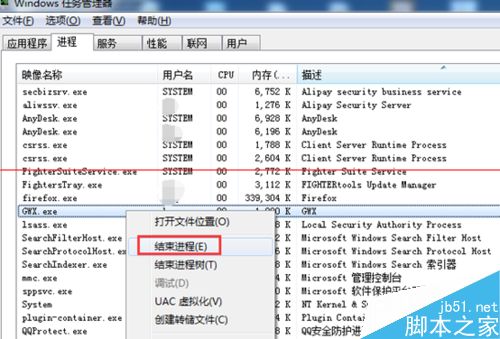 既然是一个新玩意,那么进程里面肯定会有。仔细查看找到如夏天GWX.exe没错就是这个 就是那个更新的进程。
