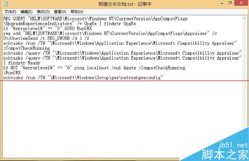 - REG QUERY "HKLMSOFTWAREMicrosoftWindows NTCurrentVersionAppCompatFlagsUpgradeExperienceIndicators" /v UpgEx | findstr UpgExif "%errorlevel%" == "0" GOTO RunGWXreg add "HKLMSOFTWAREMicrosoftWindows NTCurrentVersionAppCompatFlagsAppraiser" /v UtcOnetimeSend /t REG_DWORD /d 1 /fschtasks /run /TN "MicrosoftWindowsApplication ExperienceMicrosoft Compatibility Appraiser":CompatCheckRunningschtasks /query /TN "MicrosoftWindowsApplication ExperienceMicrosoft Compatibility Appraiser"schtasks /query /TN "MicrosoftWindowsApplication ExperienceMicrosoft Compatibility Appraiser" | findstr Readyif NOT "%errorlevel%" == "0" ping localhost >nul goto :CompatCheckRunning:RunGWXschtasks /run /TN "MicrosoftWindowsSetupgwx