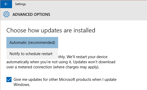 当更新可用时,它们会被下载并立即安装,但不一定强制用户重新启动;其次,Windows Home用户无法绕过有Bug的更新。目前在内幕预览计划当中,更新设置为自动获得自动安装,但是提供一个选项来安排何时重启,没有手动检查更新,或推迟下载和安装的选项。