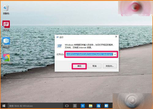 我们在打开的运行对话框中输入:rundll32.exe shell32.dll,Control_RunDLL desk.cpl,,0,确定或者回车;