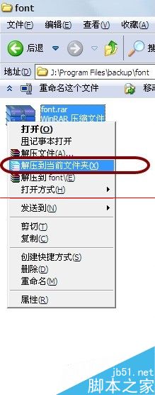 2、然后右击字体压缩包,解压到当前文件夹