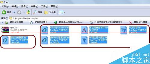 3、可以看到若干ttf,fon等格式的字体,先选中我们需要批量添加到Windows系统的多个字体。可以按住Ctrl键或者Shift键,进行批量选中。