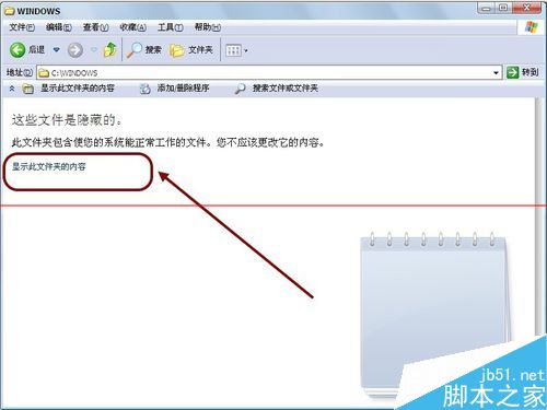 7、这时一般默认是隐藏的,是Windows出于安全性考虑,避免大家误操作。我们点击显示隐藏的系统文件夹。