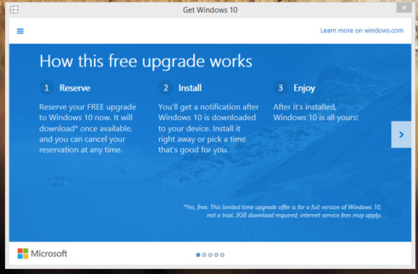 微软计划在2-3年内让Windows 10达到10亿安装量,这意味着公司必须疯狂的加强宣传力度。鉴于现在已经直接向Windows 7/8用户推送了升级广告,预计实现这一目标并不会太难。