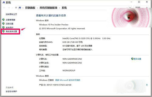 2、在打开的系统窗口,我们左键点击左侧的高级系统设置;