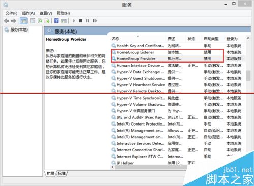 找到 HomeGroup Listener 和 HomeGroup Provider 服务,分别停止和禁用这2个服务。