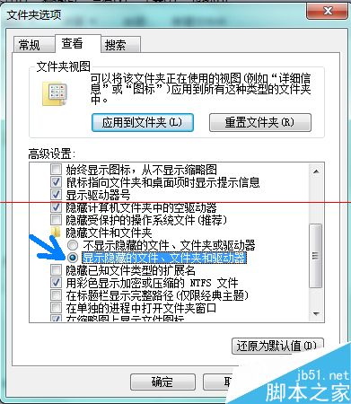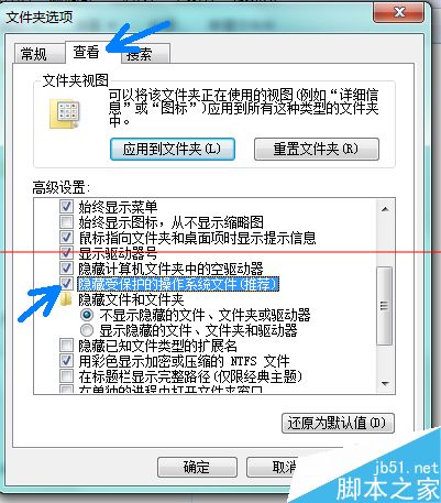 3、查看里面,把 系统保护隐藏文件 和 显示隐藏文件 都如图弄好了。