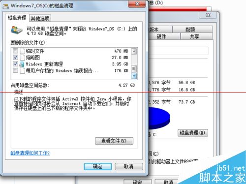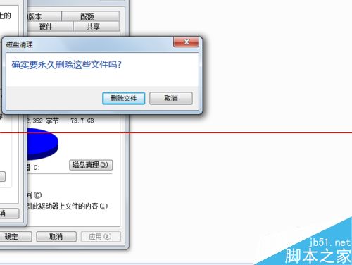 5、选择完要清理的文件后,选择下方的确定,win7会提示是否要删除这些文件,选择下方的删除文件。