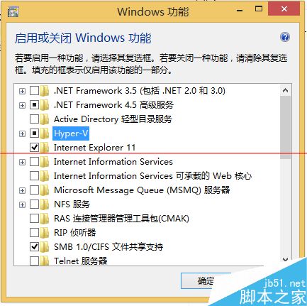 2、选中Hyper-V,点击确定