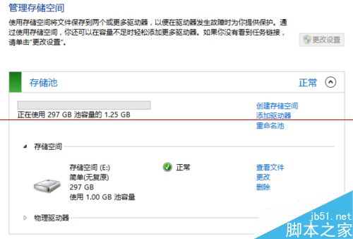 5、当创建完成存储空间后,就可以看到当前的使用状态,也可以在管理存储空间中对空间进行更改和删除。