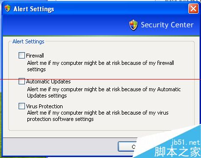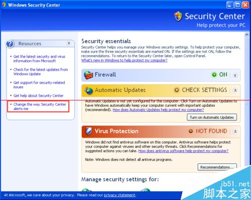 5、单击Change the way Security Center alerts me,打开警告设置设置对话框。