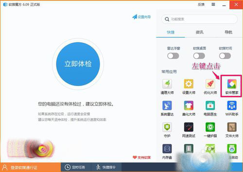 我们左打开的软媒魔方对话窗口,左键双击:软件管家;