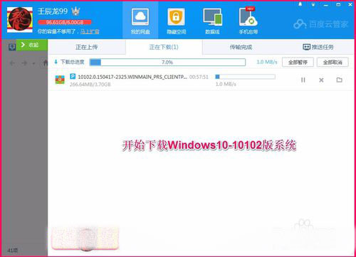 开始下载Windows10-10102版系统文件,请稍候,时间约1小时左右;