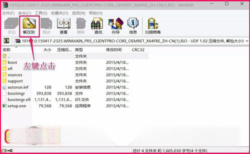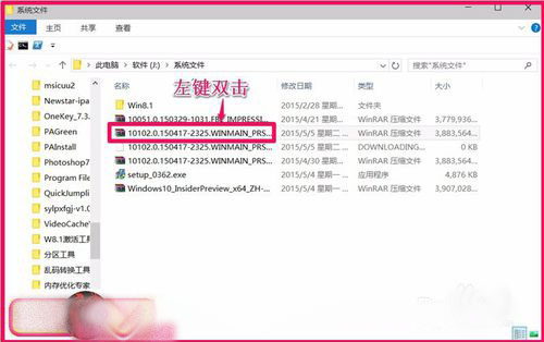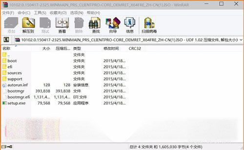 在打开的存储文件窗口,我们左键点击刚才下载的Windows10-10102版系统文件,打开文件的解压缩文件窗口;(注意:如果打开的是ISO镜像文件,我们右键点击图标 - 打开方式 - 压缩文件即可得到压缩文件)