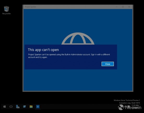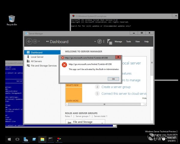 新版本中已经安装了VMware Workstation 11虚拟机,同此前版本比较最大的差别在于首次取消了Cortana语音助手,而更加专注于服务器管理和设备所扮演的角色。然而,在该版本中提供了Store商城和Microsoft Edge浏览器,但是哪怕使用内嵌的管理员帐号登陆也无法使用这两款应用。