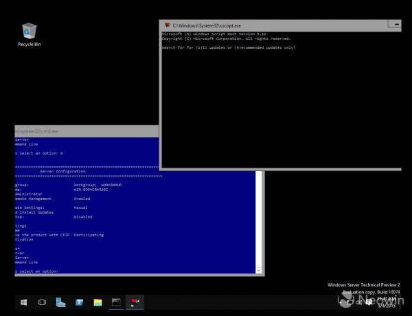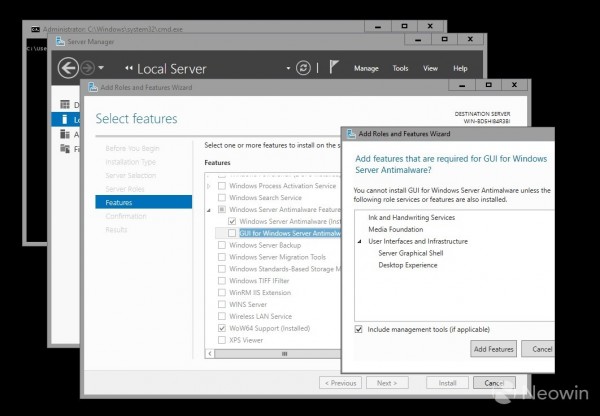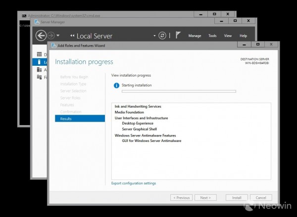 该版本的初始化安装并不包含桌面或者GUI工具,在安装过程一路顺畅,随后外媒在该版本上安装了GUI。在完成GUI的安装之后,能够轻松使用Add New Features功能,使整个服务器系统看上去像是Windows 10 Insider预览版,尽管在操作体验上有着很大的差别。