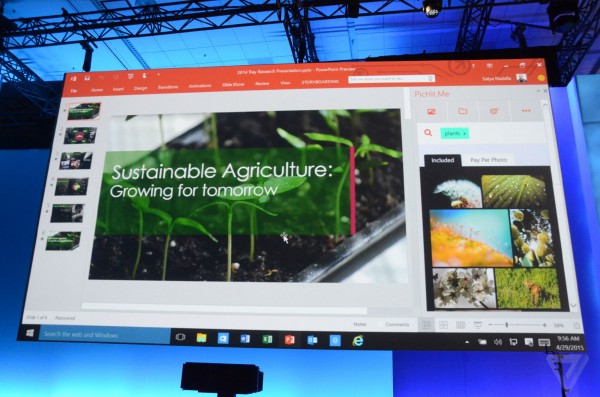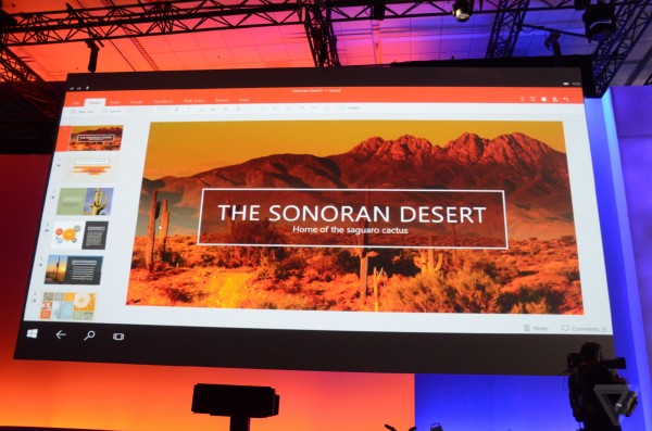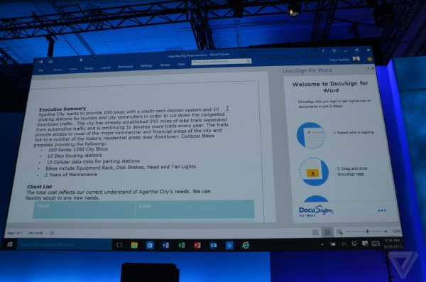 Office Extensibility项目经理Rob Lefferts上台,展示运行在Windows 10上的Word 2016。