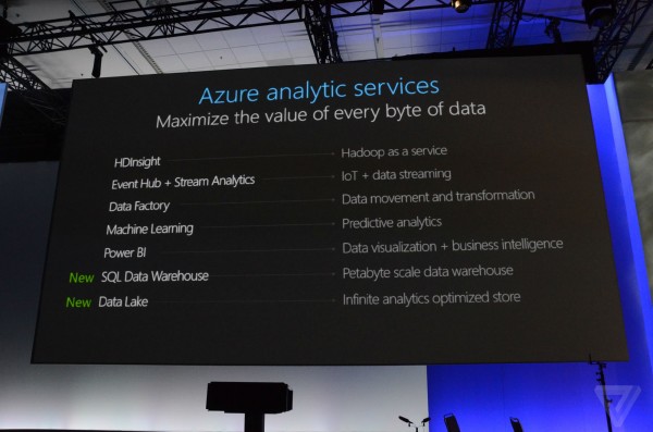 并在会上宣布将于今天发布两个新的Azure服务,SQL Data Warehouse 与 SQL Data Lake.