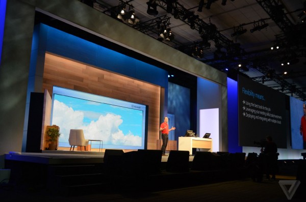 一段视频过后,Terry Myerson登场,他是Windows 10开发的核心人物。“Windows 10将成为最吸引开发者的平台”。