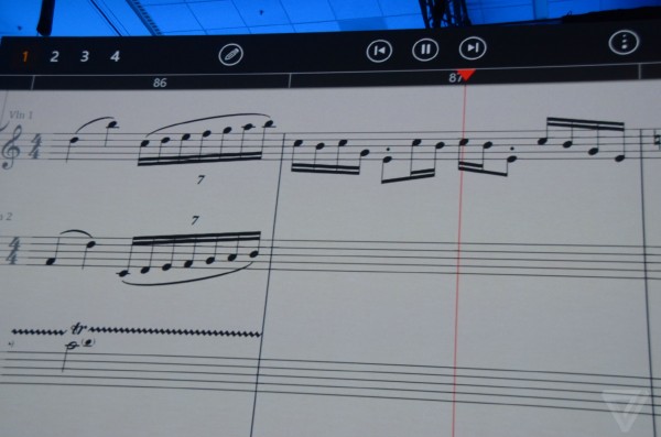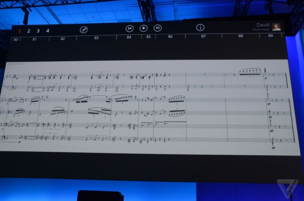 现场演奏出一段非常震撼的音乐,音乐人瞬间就用手写笔的特性谱出了一首美妙乐曲,这个应用已经在Windows平台上登陆,没有iPad的份。(因为iPad并不原生支持手写笔)