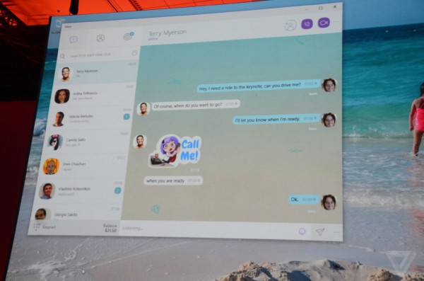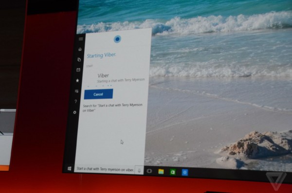 Joe启动Cortana打开Viber与Myerson聊天,全程使用自然语言进行互动。