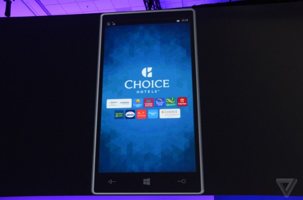 在WP上演示Choice hotels安卓应用的Windows 10版。