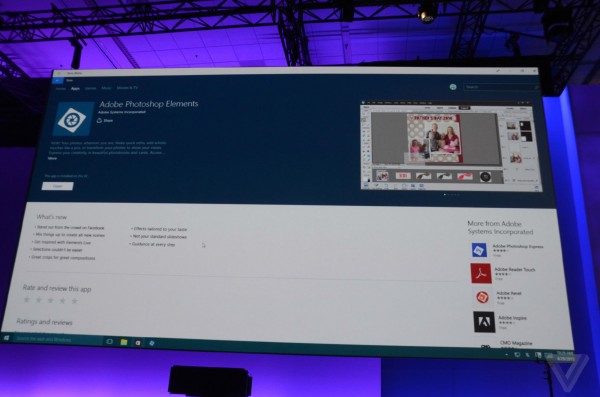 第二,.NET与Win32程序终于登陆Windows Store了,现场演示Adobe的Photoshop。开发者们现在可以将当前的桌面应用带到Windows Store上了。打通桌面程序后,Windows商店应用稀少的问题有望得到彻底解决。