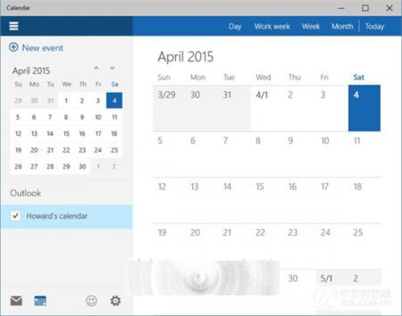 在Windows 10 最新的技术预览版本中,我们发现日历应用的界面已经进行了升级,看起来与邮件应用更加一致。