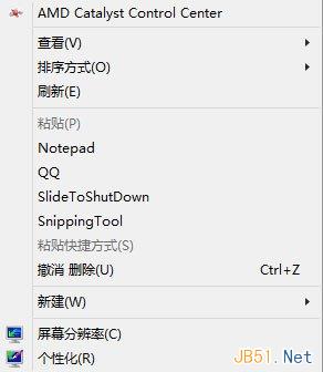 5、最后成功为Win7、Win8.1右键菜单添加了记事本、QQ、滑动关机、截图工具等功能,参考如下:
