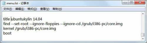 2、不同版本的Ubuntu,menu.lst中的写法可能会不同,请查阅相关资料