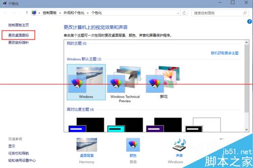 2、进入到个性化后,点击左边的更改桌面图标