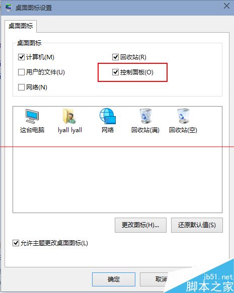 3、把控制面板打勾,这样桌面就有一个控制面板 了,控制面板是我们常用的,放到桌面设置什么东西都方便。