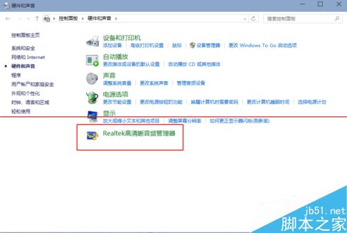 5、单击“声音和硬件”进入后选择Realtek高清晰音频管理器