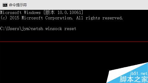 3、完成步骤二后,输入以下指令 netsh winsock reset,如下图: