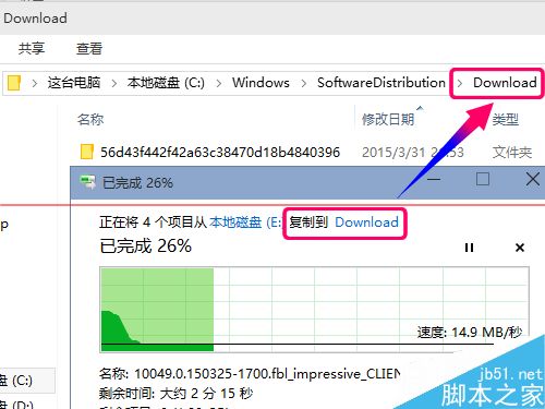 3、把更新程序停留不要关闭,然后从系统盘找到以下目录,通过查看文件夹的大小找出更新文件的所在目录,一般大小为2G的那个