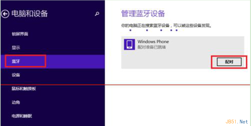 3、双击蓝牙图标,在电脑和设备窗口中,打开蓝牙连接的设备就会出现在列表中,会出现配对命令,点击配对。