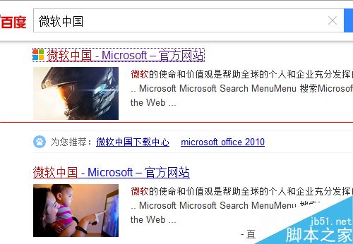 1、一般提示错误代码第一时间应该去官网查看原因,打开浏览器百度搜索关键字"微软中国"打开中文网站