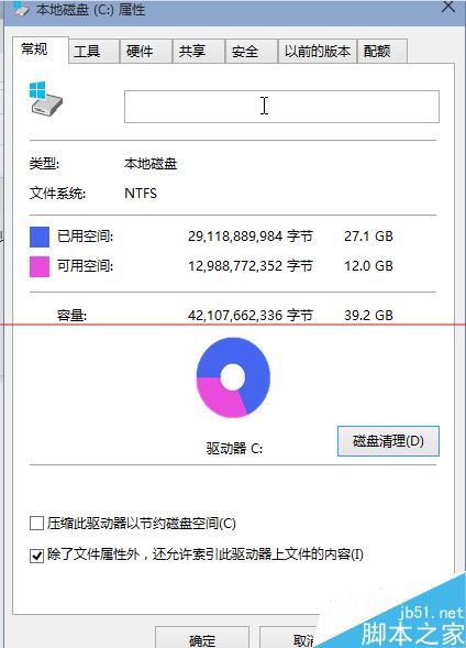 4、在弹出菜单中选择<常规>选项卡,然后选择如下图位置的<磁盘清理>