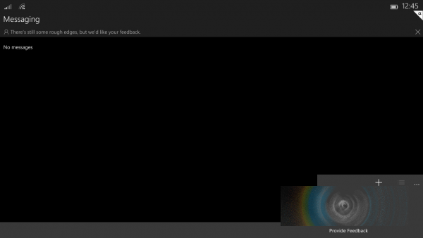 在全新的Windows 10应用中最值得赞扬的地方就是位于屏幕右下角的“三点”按钮,以Message应用为例,只需要轻松的移动右手拇指能够非常轻松的导航至其他的任务,这在实际使用过程中是非常实用的。