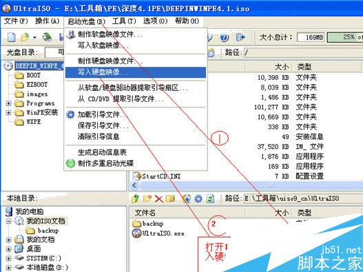 1. 用UltraISO制作U盘启动盘 方法非常简单:插上U盘(事先格式化),然后在UltraISO里打开Windows 8.1的ISO镜像文件,选择“启动光盘—写入硬盘映像”即可。一张图就足以说明。