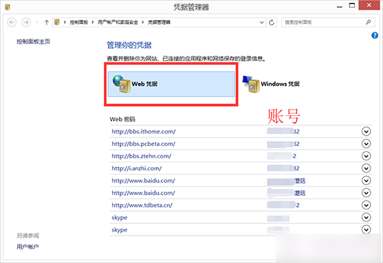 有时候我们为了安全,我们通常会在不同级别的网站或者社区,登陆不同级别的账号密码。但由于账号太多,经常会有某些不常去的网站账号密码忘记了。那么忘记了这些登陆过的账号密码怎么办?除了找回,有些连账号都忘记了无法找回,下面小编教大家巧用Win8凭据管理器,找回网页中存储的账号密码。
