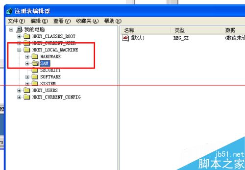 1、依次展开“[HKEY_LOCAL_MACHINESAM]”,然后点击SAM前面的“+”号。