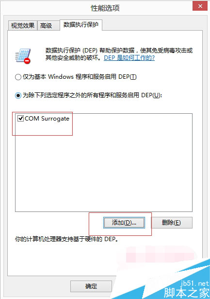 “性能->设置-> 数据执行保护”,添加dllhost.exe,然后点击确定。重启电脑试下。