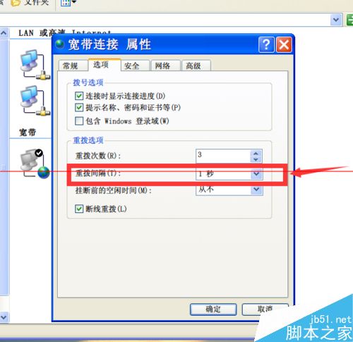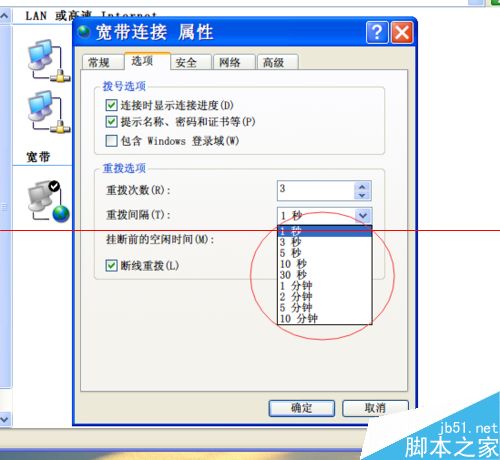 6、以后断网会自动重拨,我选择的是1秒的时间间隔~~