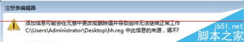 4、接着双击刚刚创建的文件,此时会弹出一个注册表编辑器警告框,我们只需点击“是”即可,当我们再次运行可执行文件的时候就不会弹出提示了。