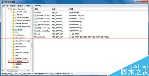 b、进入到win7系统xitongcheng.com/win7/注册表编辑器窗口之后,左侧依次展开HKEY_LOCAL_MACHINESoftwaremicrosoftWindowscurrent versionpolicies
