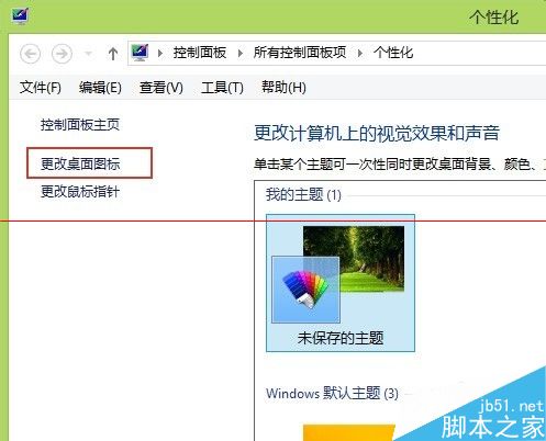 第二步,在桌面的"属性"面板中选择左侧的"更改桌面图标";