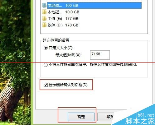 注意事项:勾选"删除确认对话框"时请选择每个盘,看是不是每个盘都已经勾选了。