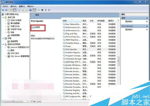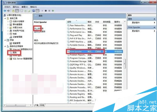 关闭Print Spooler服务来解决,下面以win7系统为例详细做下介绍设置方法。