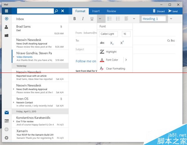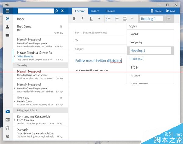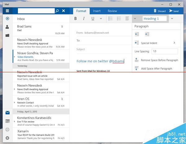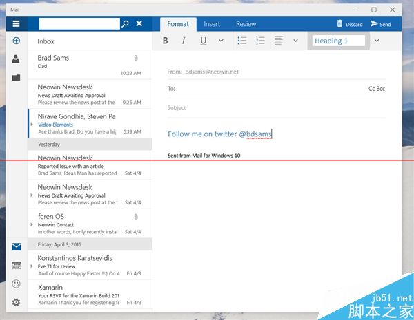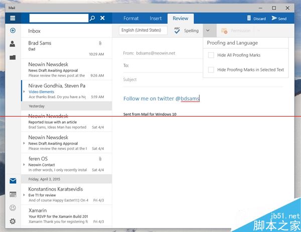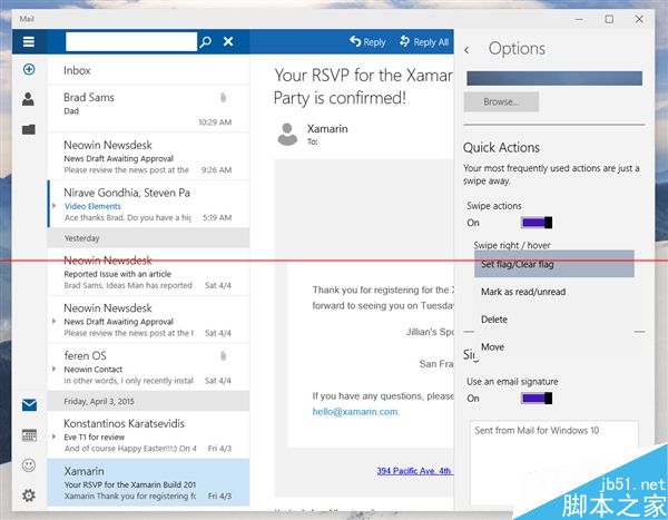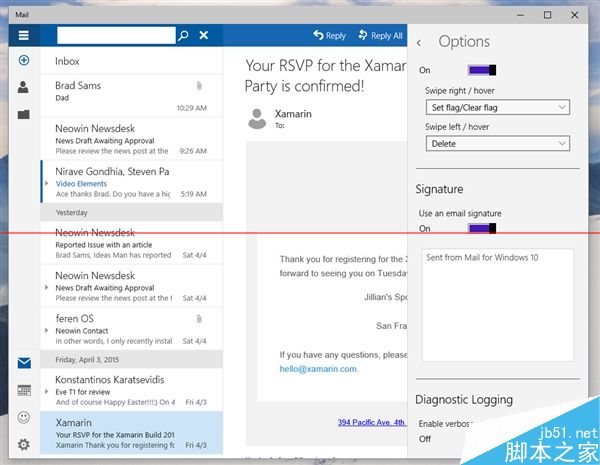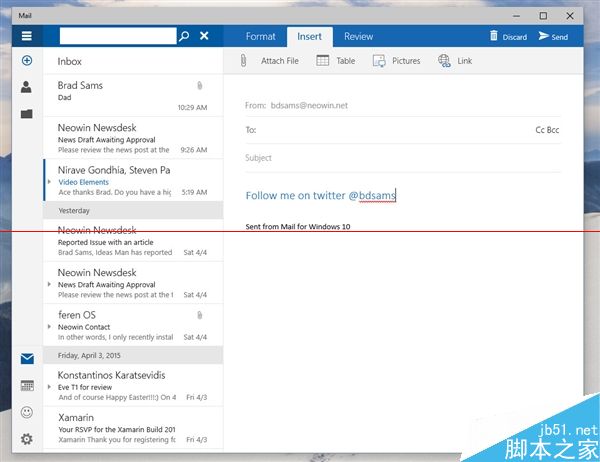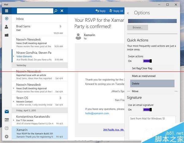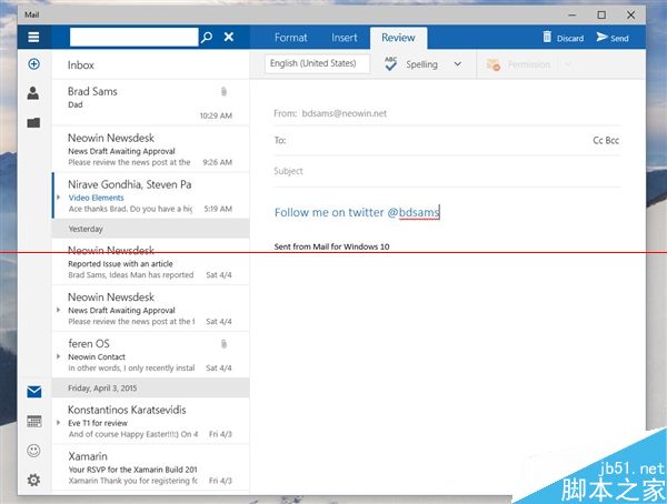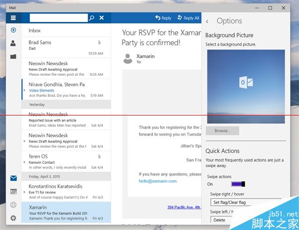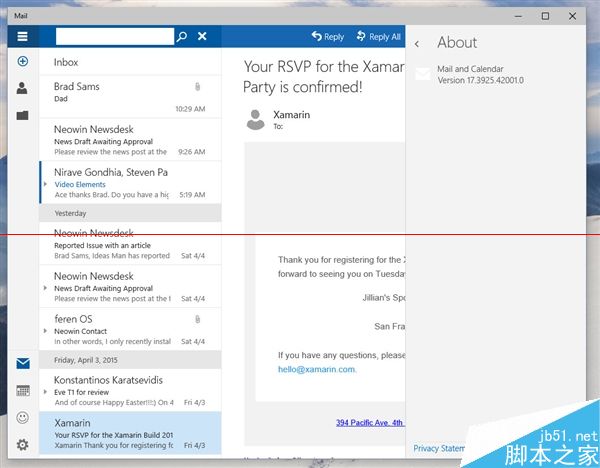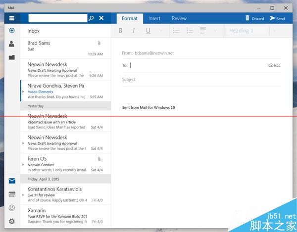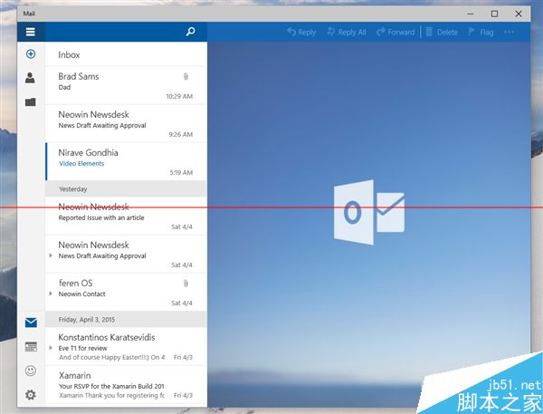 据说Build 10051主要带来了应用界面改版以及通用应用,其中变化最大的就要数系统自带的“邮件”应用了。